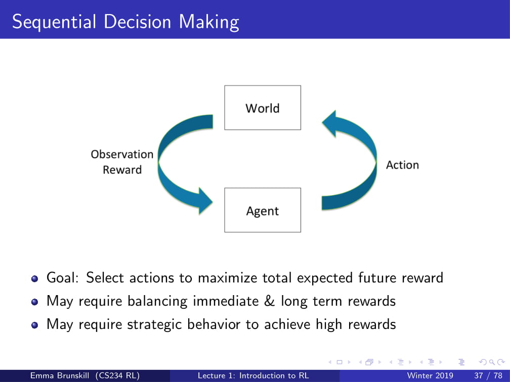 강화 학습 개념 정리노트 - CS234 1강 (강화 학습의 개념, MDP)