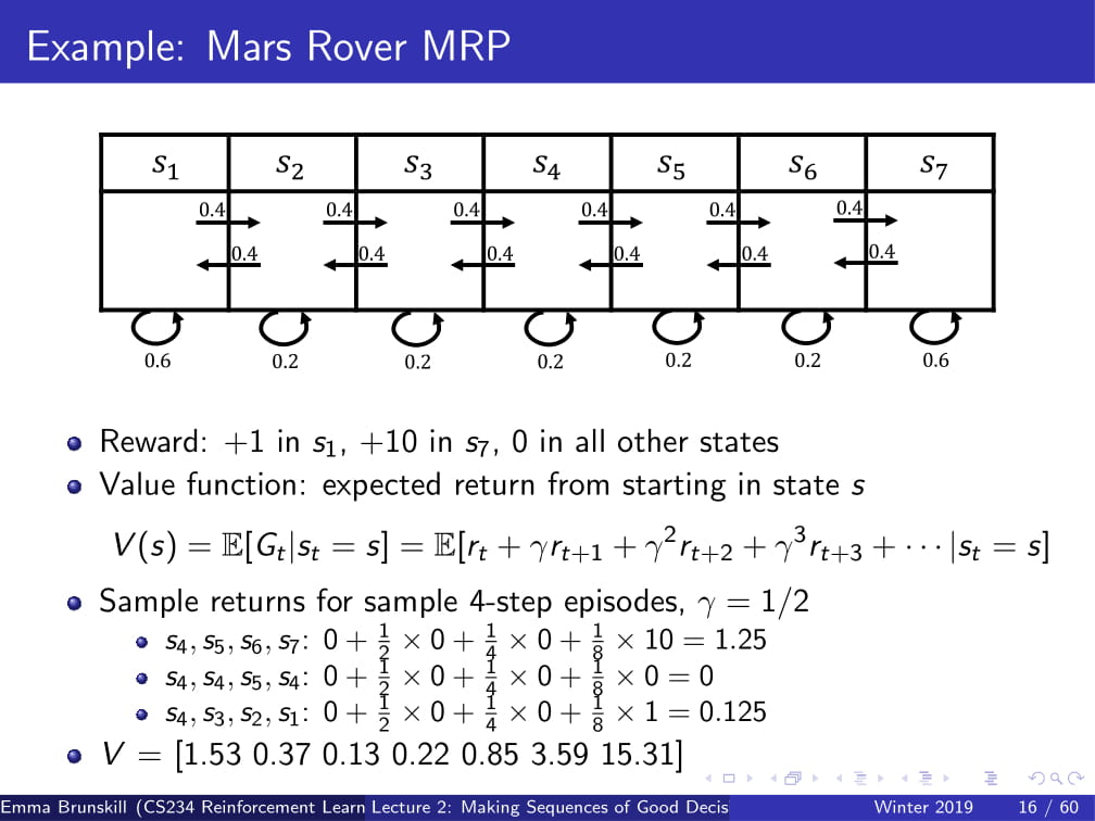 여기까지 CS234 2강을 정리하도록 하겠다.