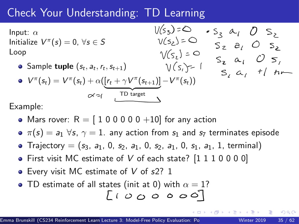 * TD(0)은 α=1일 때의 TD를 의미함.