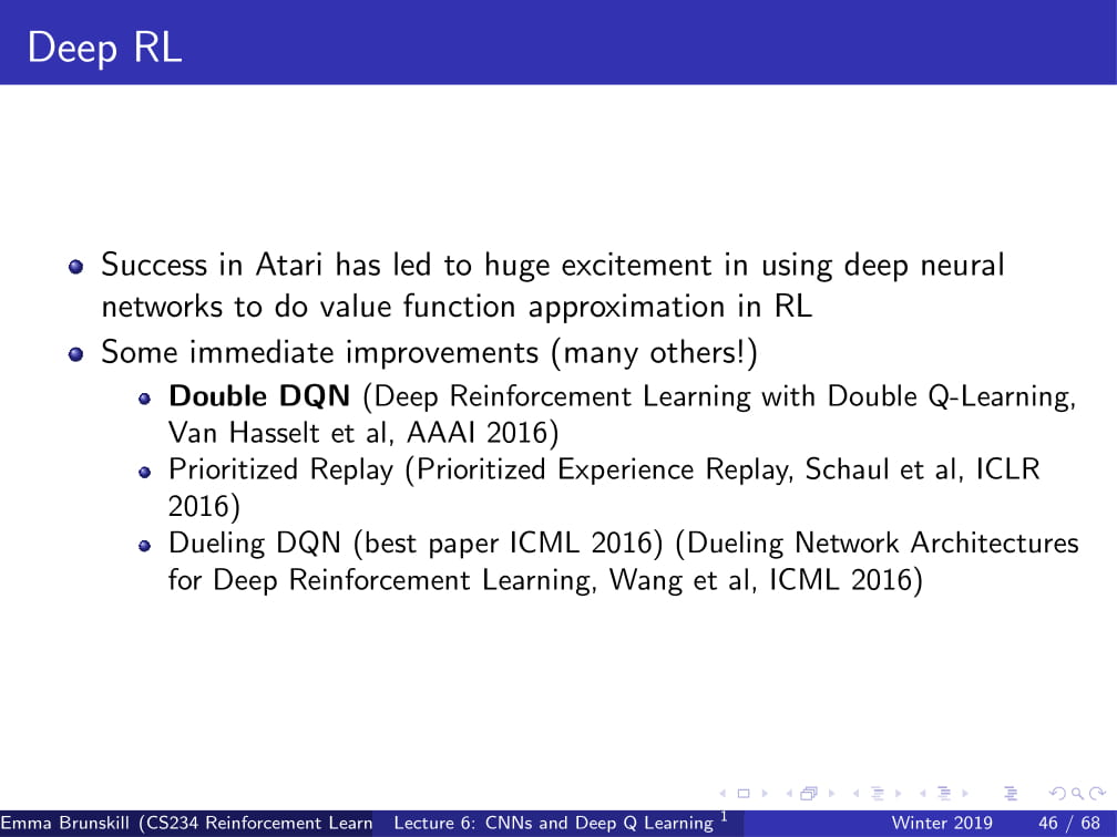 이제부턴, Deepmind의 논문 이후에 발표된, Deep RL의 주요 improvemets들을 설명하겠다.