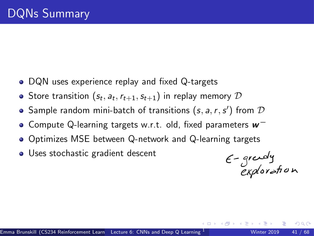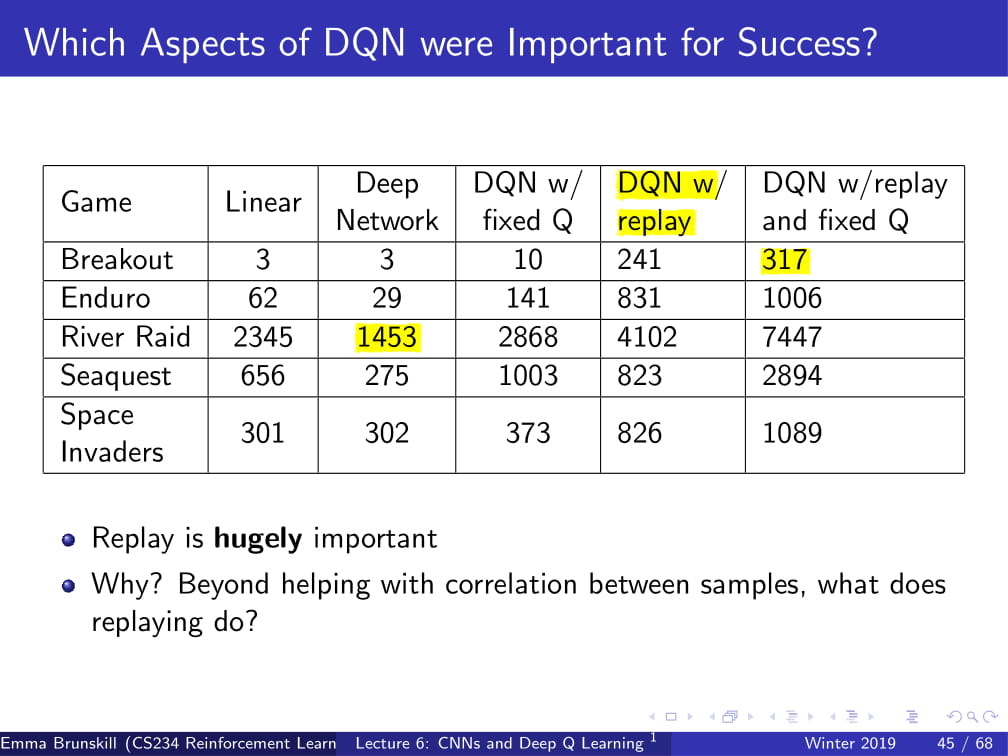 강화학습 강의 (CS234) 6강 - CNN + DQN (Deep Q Network)
