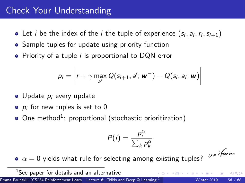 그럼 한 가지 질문만 던져보자. 만약 α=0이라면 어떻게 replay buffer가 선택이 될까?