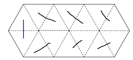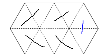 일단 위쪽 줄과 아래쪽 줄의 삼각형 갯수가 5개인 홀수이므로 적어도 한 다이아몬드는 세로로 서 있는 형태여야 한다.