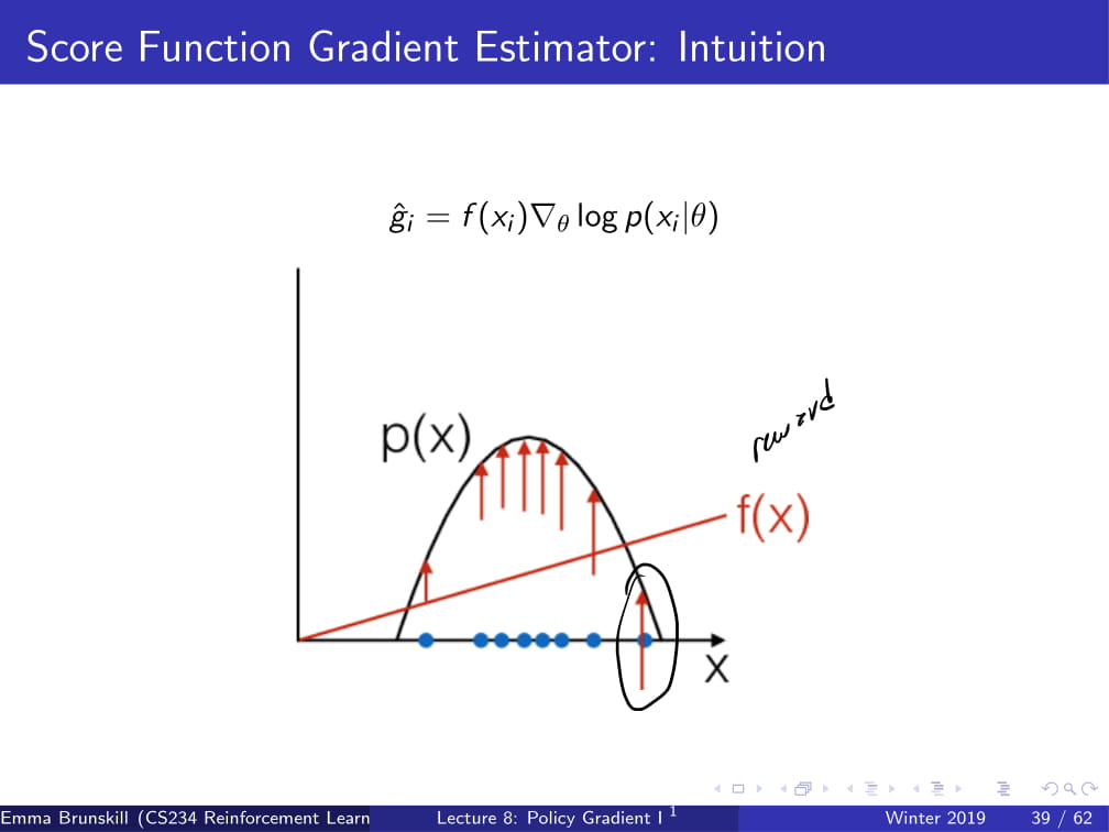 즉, ∇θlog(πθ(at|st))를 score function으로 갖는 함수가 완성된다. (reward에다가 저 값들만 곱하면 Value값이므로)